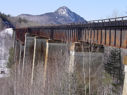 This structure measures 1200 feet long and 130 high over the Ship Pond stream gorge on the Southeast end of Lake Onawa.